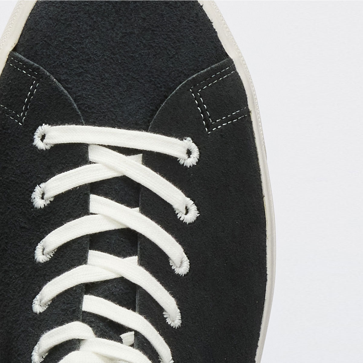 シューホールは菊穴ミシンを採用し、ベロアとの一体感を重視。